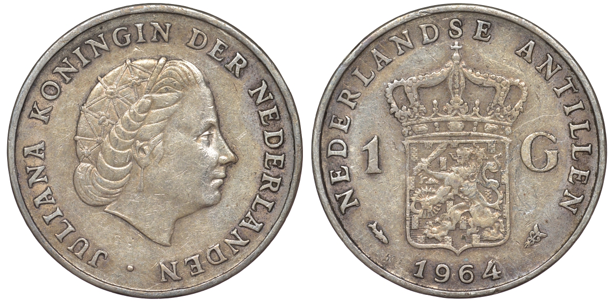 Нидерландские Антилы 1 гульден 1964 Юлиана (1948-1980) серебро 36-1043