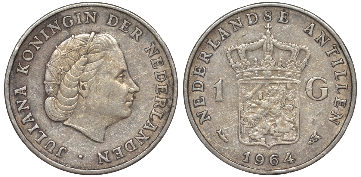 Нидерландские Антилы 1 гульден 1964 Юлиана (1948-1980) серебро 36-1045
