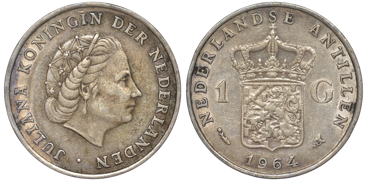 Нидерландские Антилы 1 гульден 1964 Юлиана (1948-1980) серебро 36-1046