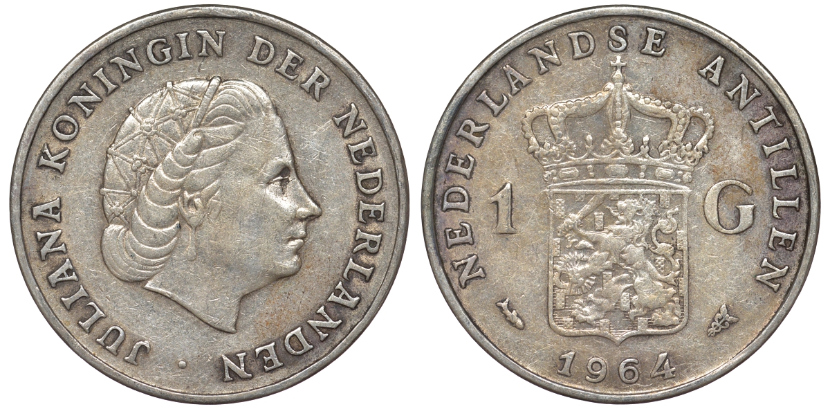 Нидерландские Антилы 1 гульден 1964 Юлиана (1948-1980) серебро 36-1047