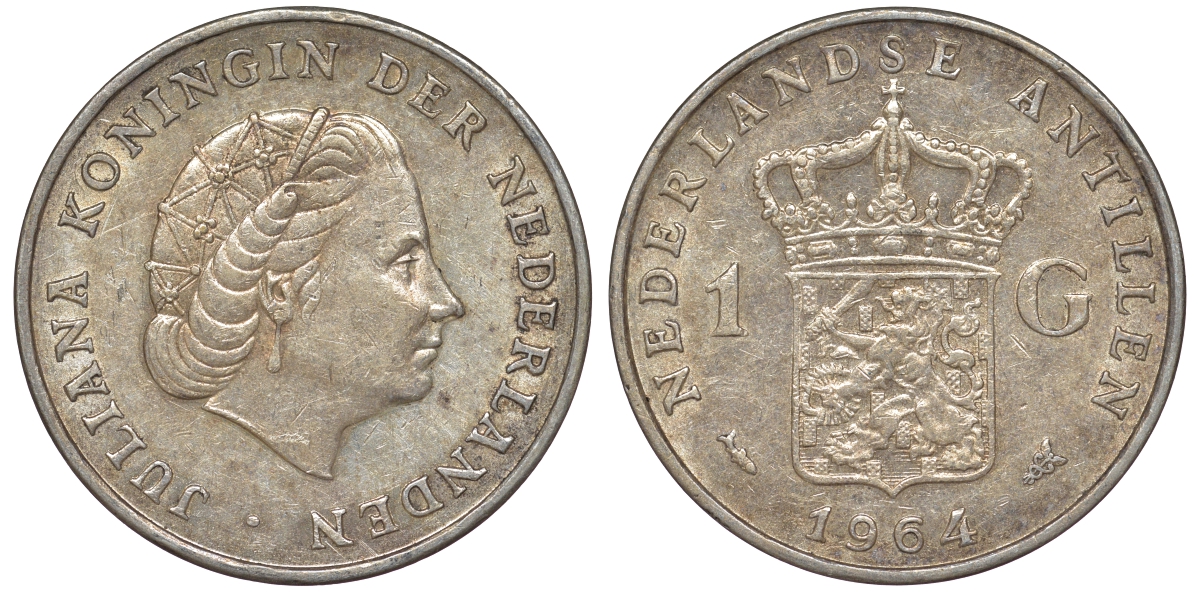 Нидерландские Антилы 1 гульден 1964 Юлиана (1948-1980) серебро 36-1052