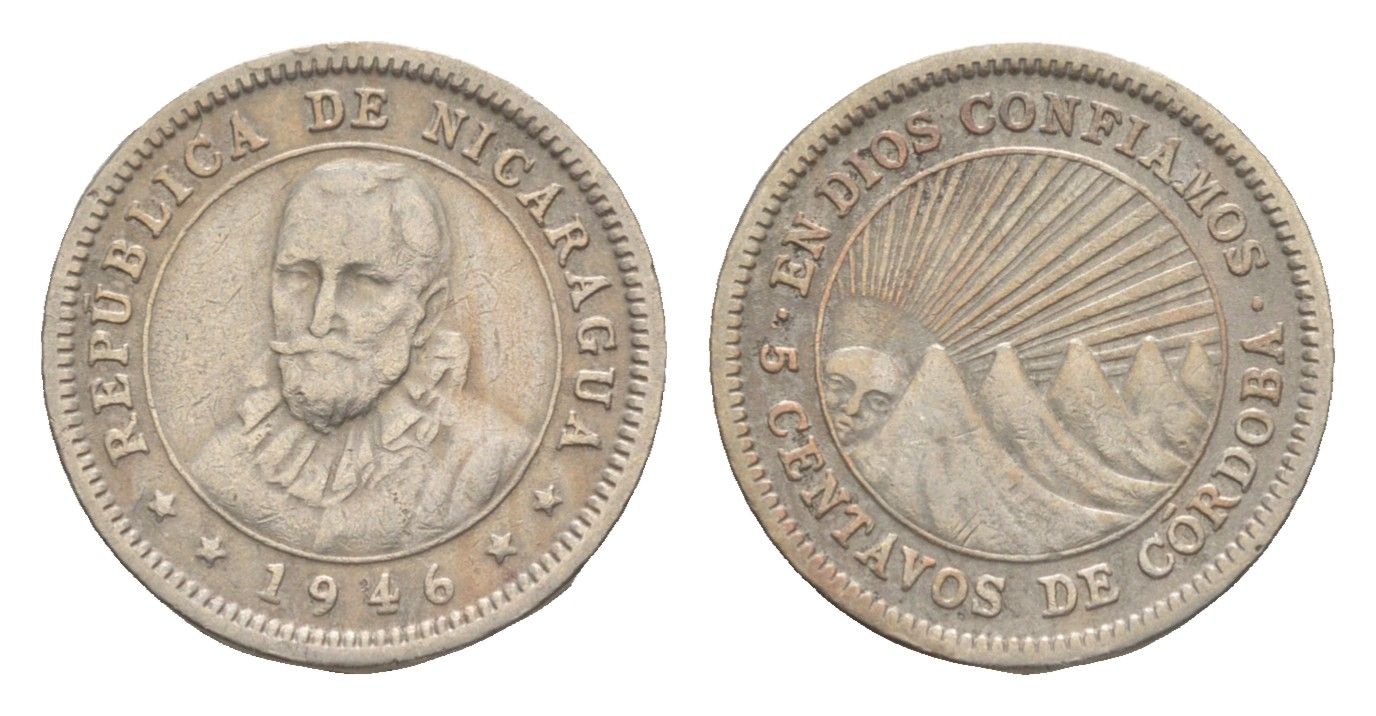 Никарагуа 5 сентаво 1946 KM 24.1 медно-никель 4640-946
