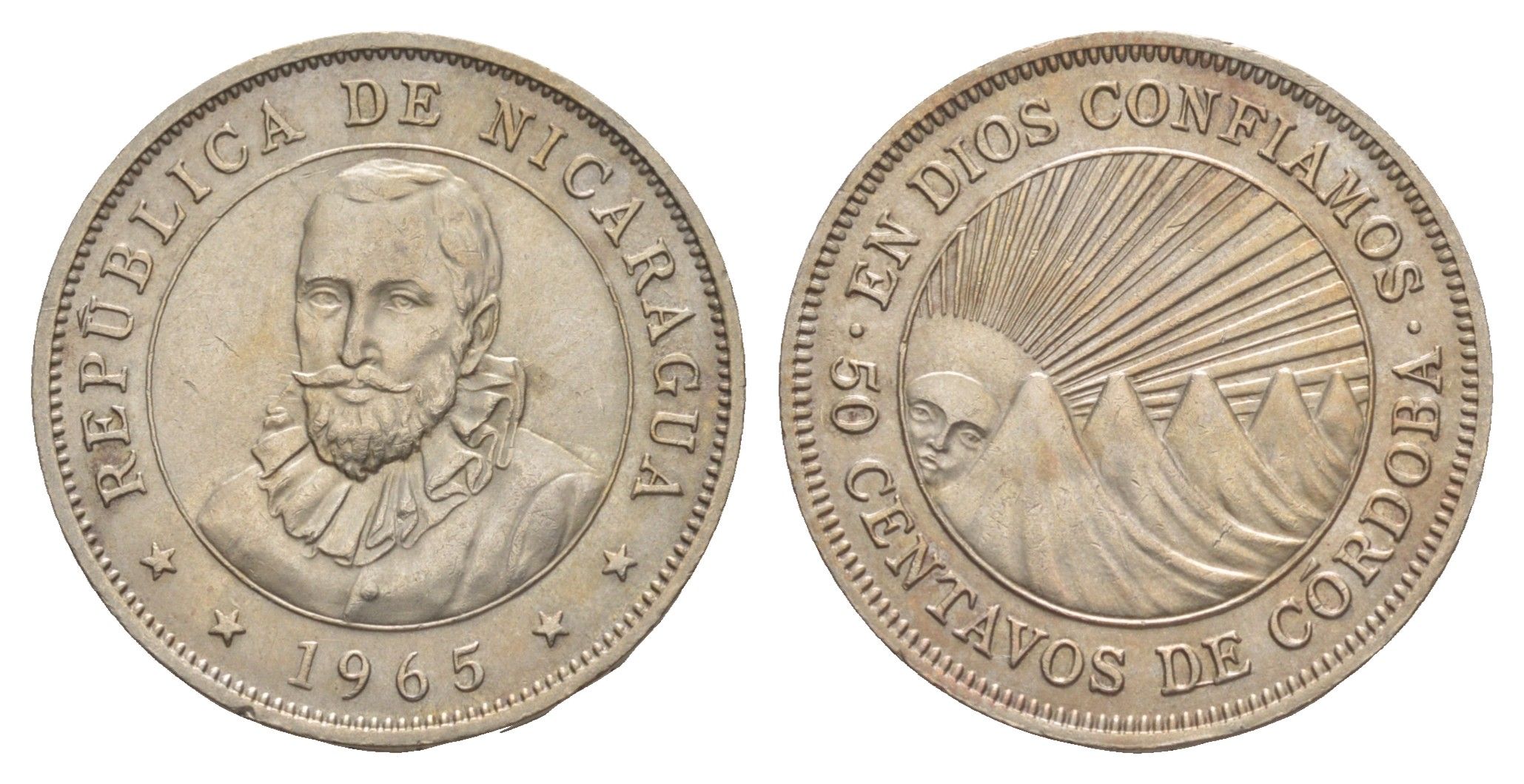 Никарагуа 50 сентаво 1965 KM 19.2 медно-никель aUNC 1528-1341