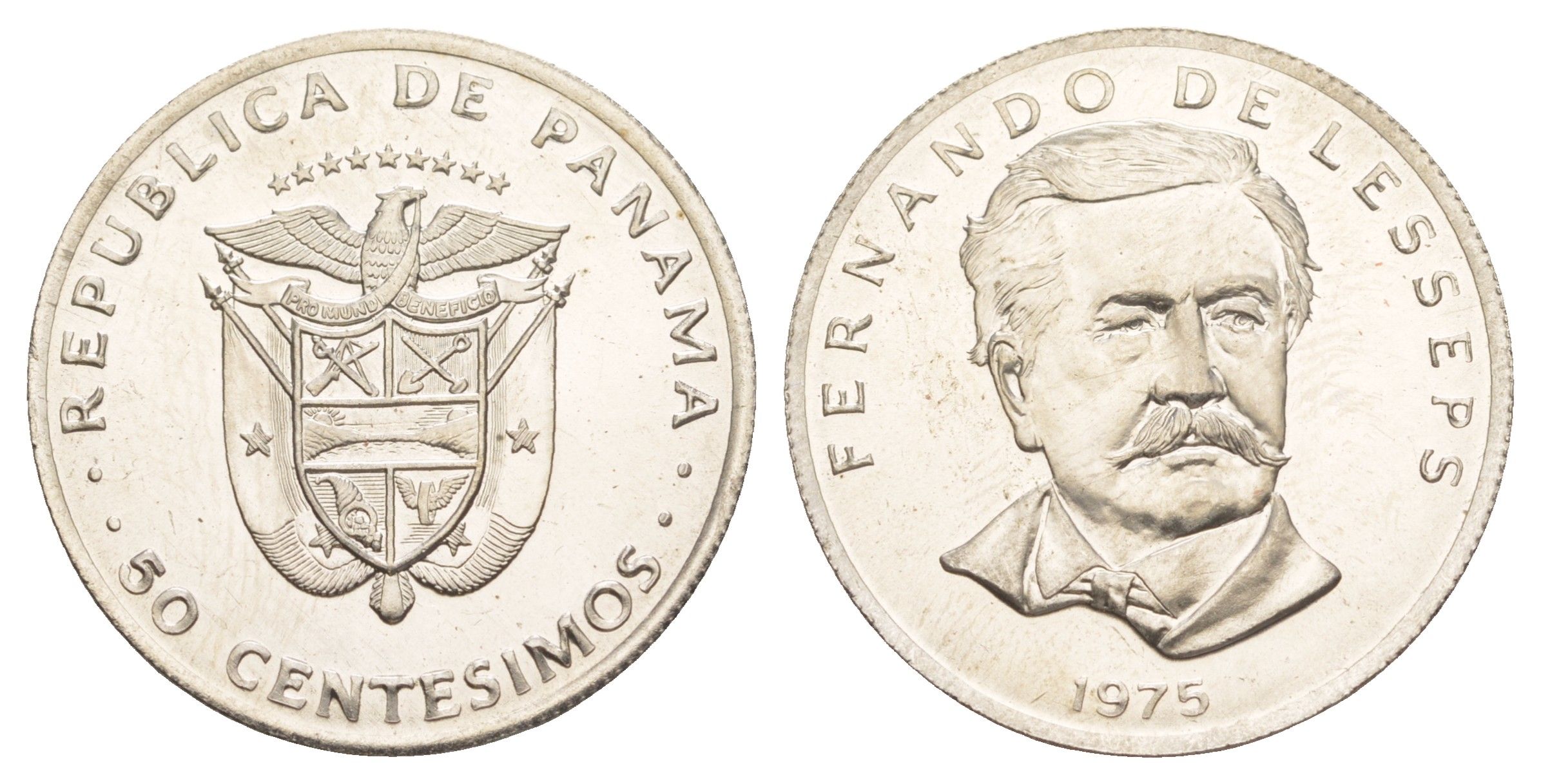 Панама 1/2 бальбоа (50 сентесимо) 1975 тираж 20.000 экземпляров KM 38 медь плакированная медно-никелем BU 4634-1131