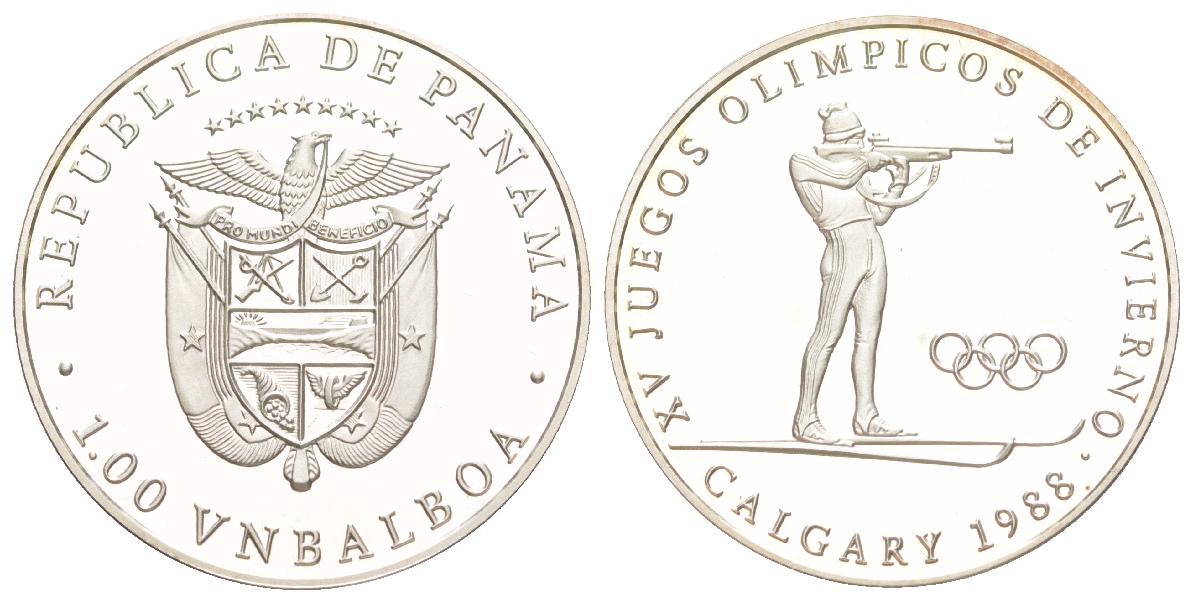 Панама 1 бальбоа 1988 XV зимние Олимпийские игры, Калгари 1988 - Биатлон X M3 медно-никель PROOF 3711-1311