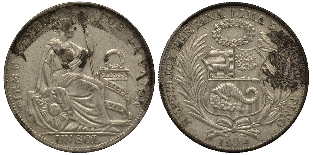 Перу 1 соль 1931 KM 218.2 серебро 272-943