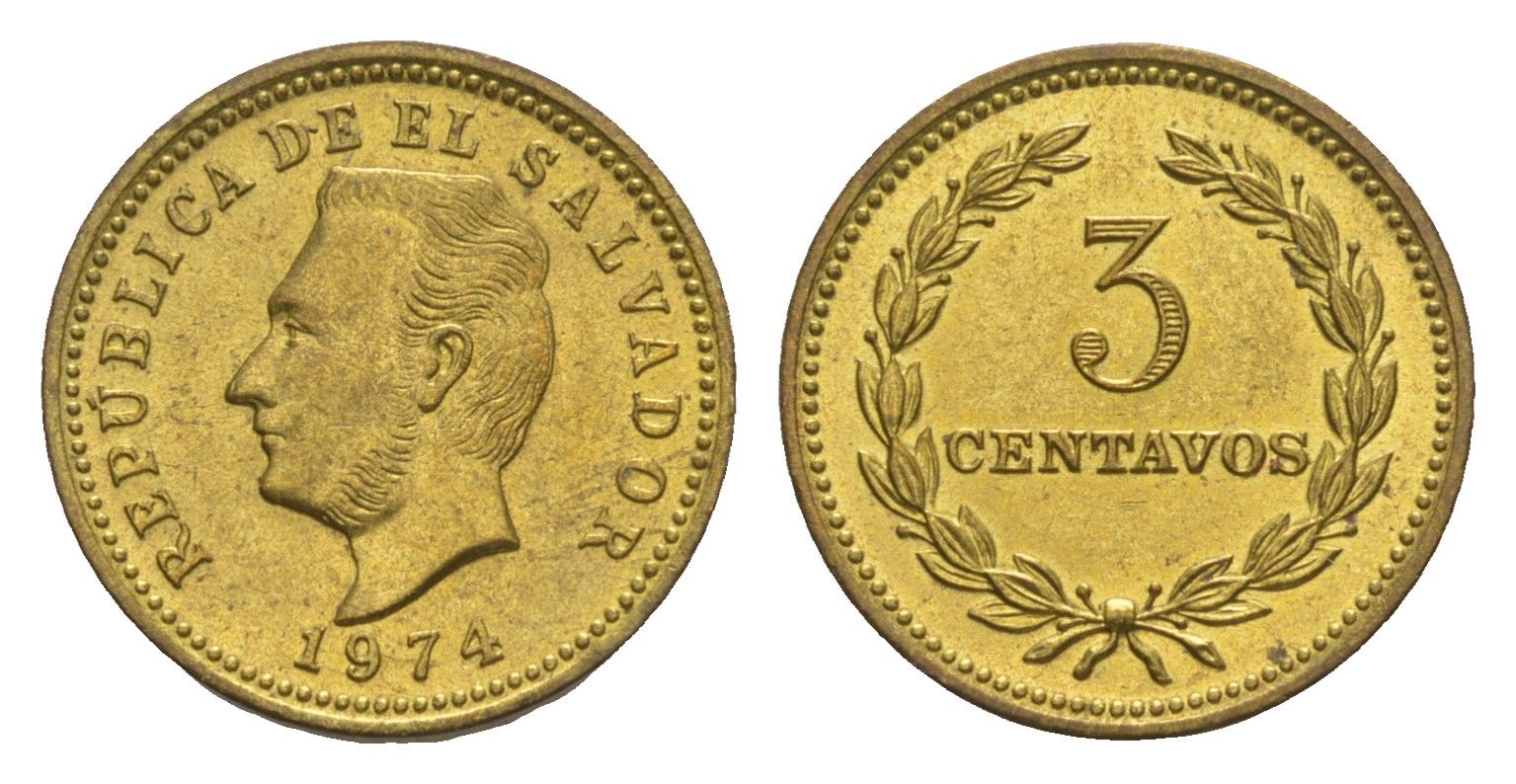 Сальвадор 3 сентаво 1974 KM 148 никель латунь UNC 4644-229
