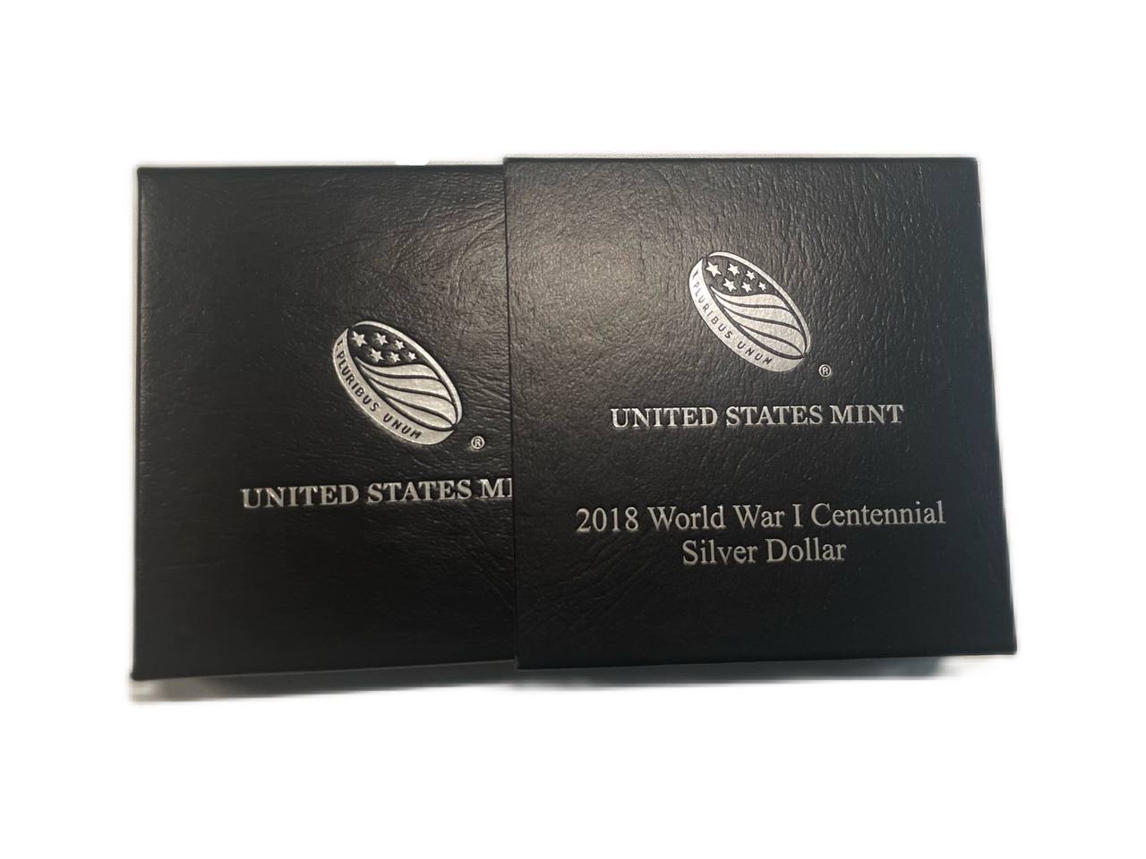 США 1 доллар 2018 P, 100 лет окончанию Первой Мировой войны, в оригинальной коробке, с сертификатом KM 682 серебро PROOF 8-2-02-11