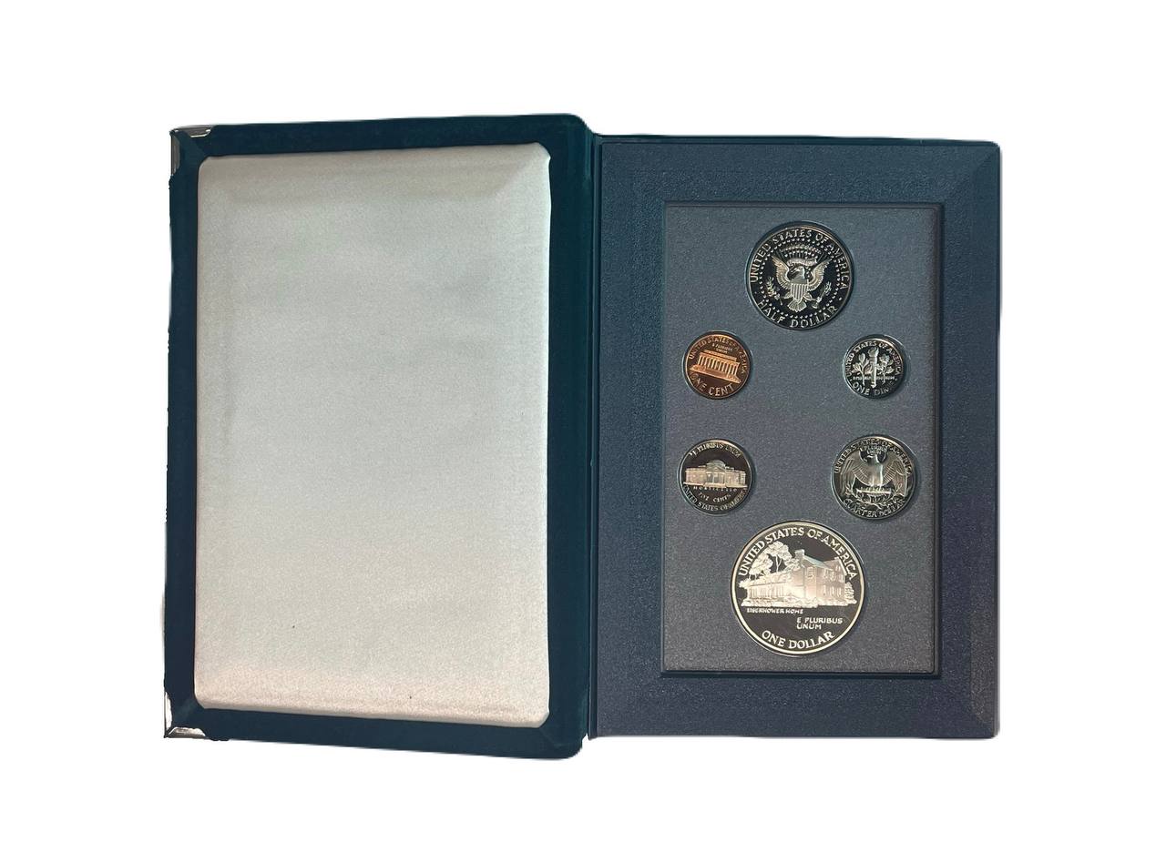 США годовой набор из 6 монет (1, 5, 10 (дайм), 25 (1/4 доллара, квотер) и 50 центов (1/2 доллара; 1 доллар) 1990 100 лет со дня рождения Эйзенхауэра, в оригинальной коробке, с сертификатом KM 201b, A192, 195a, 164a, A202b и 227 PROOF 3-4-10-01