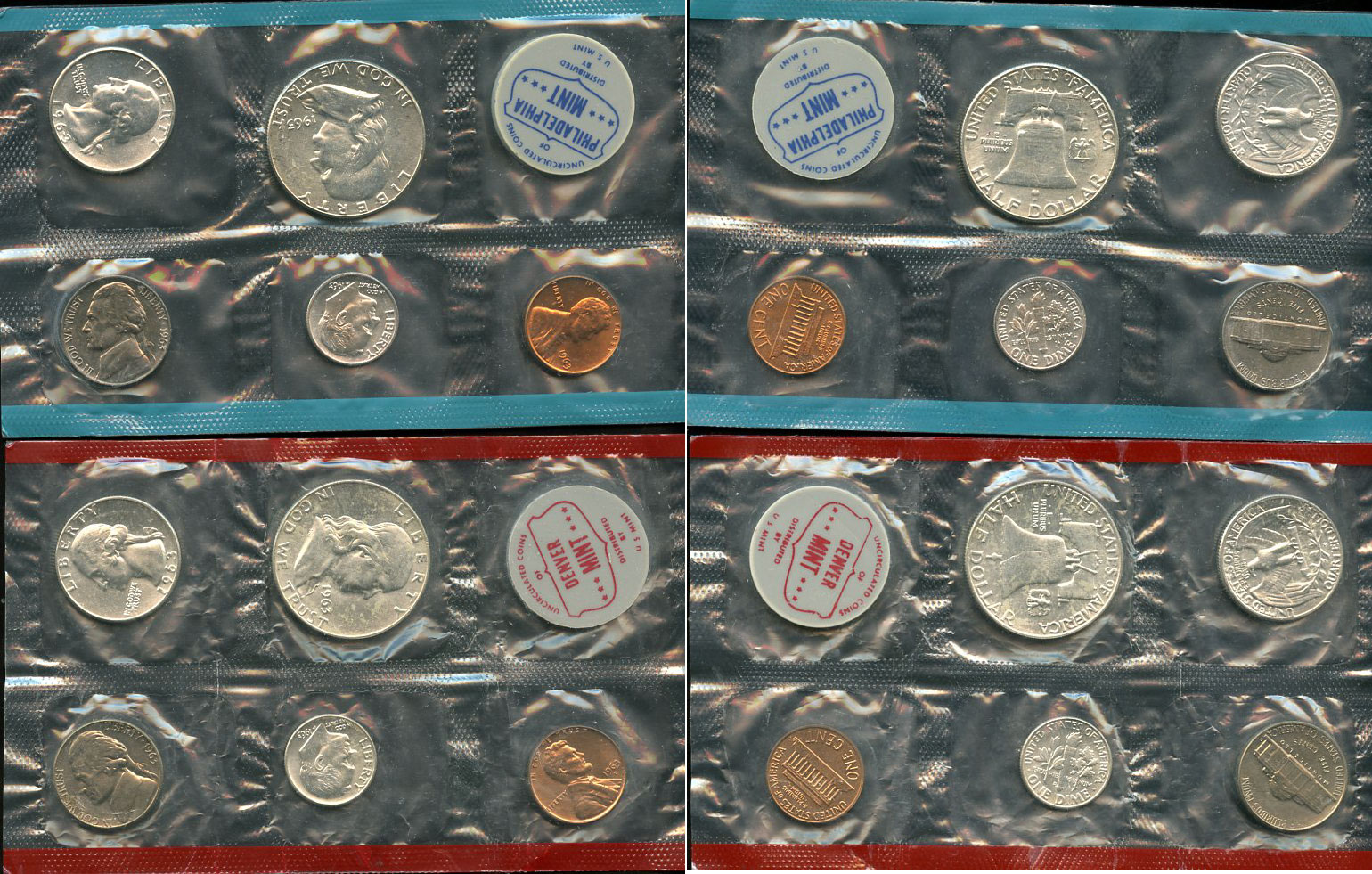 США официальные наборы из 10 монет и 2 жетона монетного двора 1963 D, P, Франклин KM MS 116 серебро UNC 3-6-1-13
