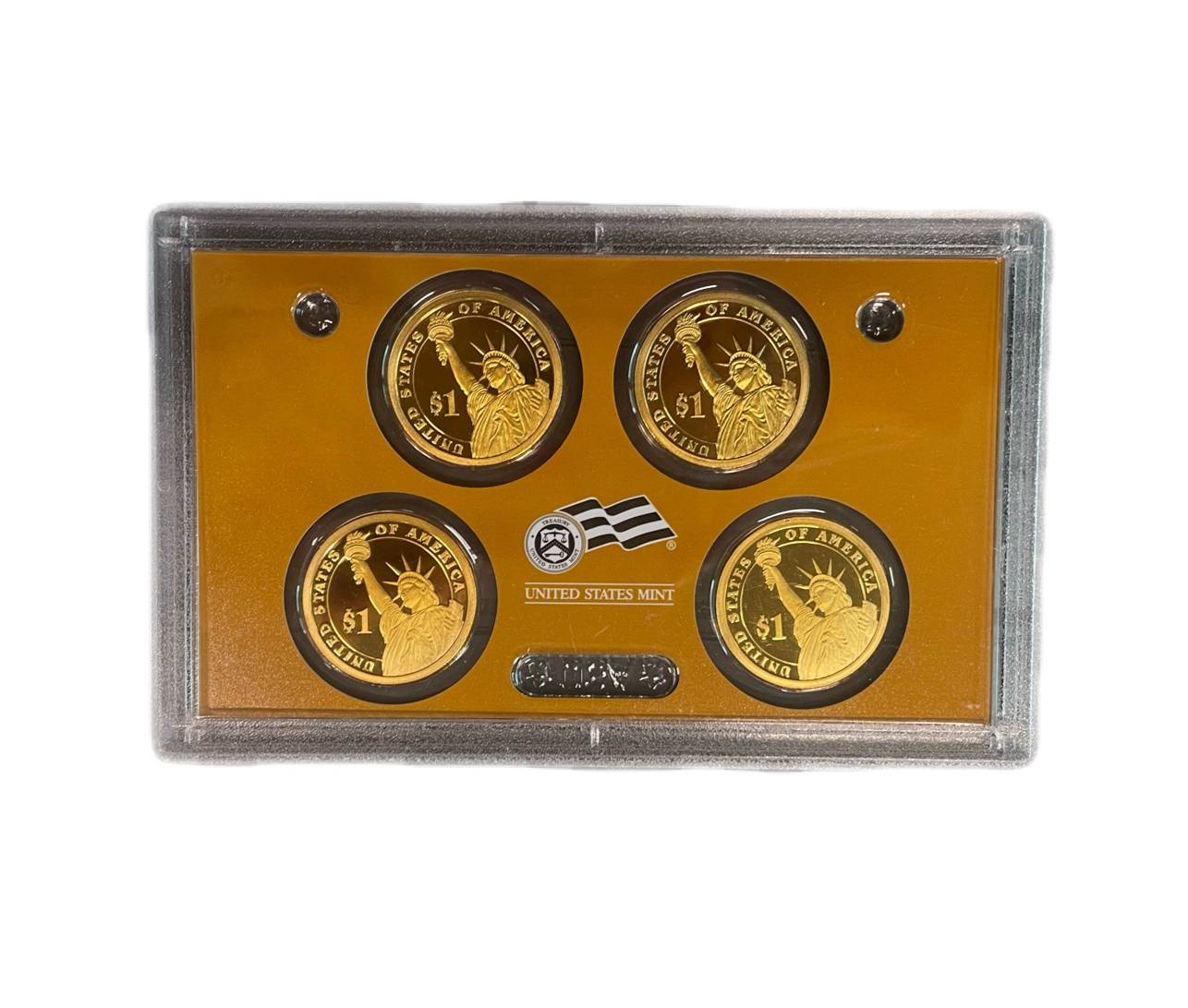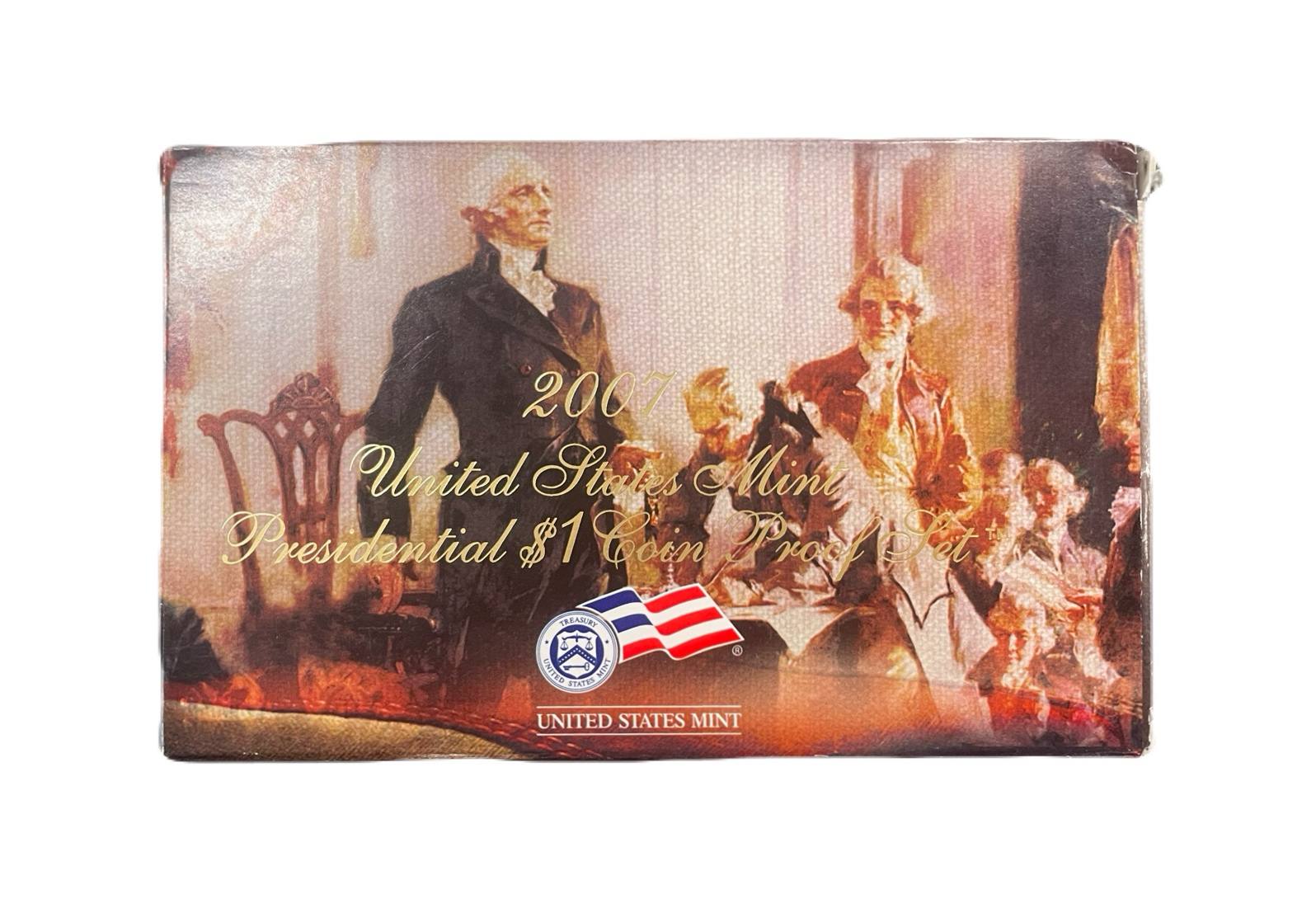 США полный годовой набор из 14 монет (1, 5, 10 (дайм) и 25 (квотер) центов; 1/2 (50 центов) и 1 доллар) 2007 в оригинальной упаковке с сертификатами KM 468, 381, 195a, A202b, 310, 396, 397, 398, 399, 400, 401, 402, 403 и 404 PROOF 5-4-1-18