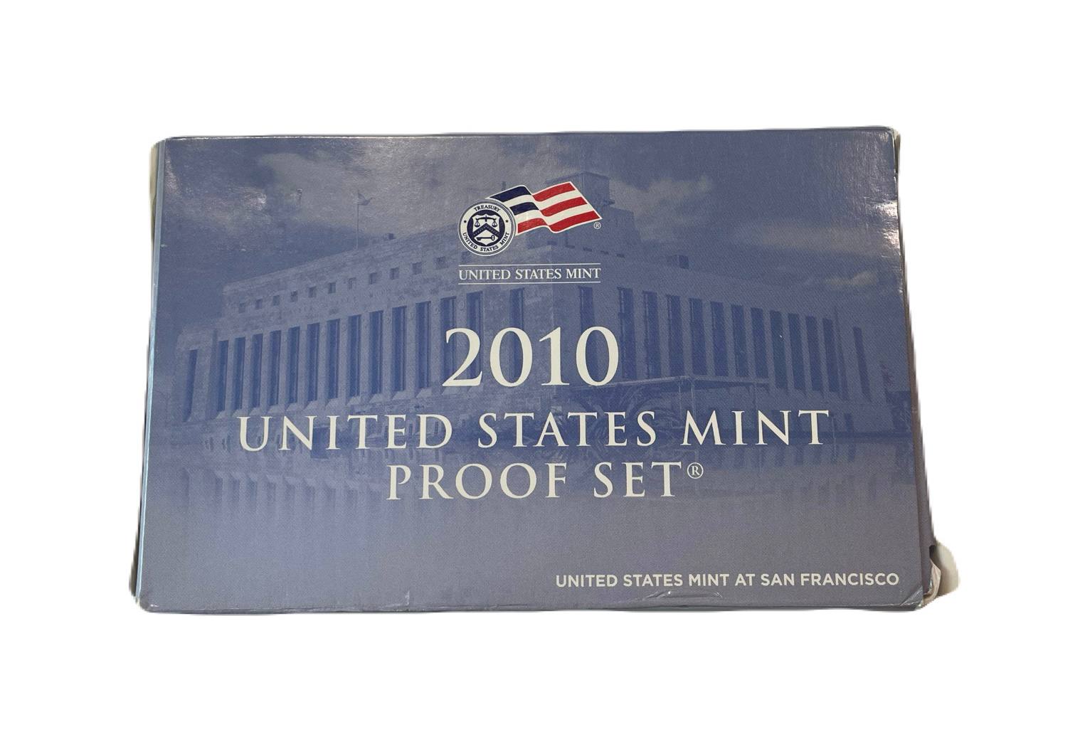США полный годовой набор из 14 монет (1, 5, 10 (дайм) и 25 (квотер) центов; 1/2 (50 центов) и 1 доллар) 2010 в оригинальной упаковке с сертификатами KM 468, 381, 195a, A202b, 469, 470, 471, 472, 473, 474, 475, 476, 477 и 478 PROOF 8-2-06-73