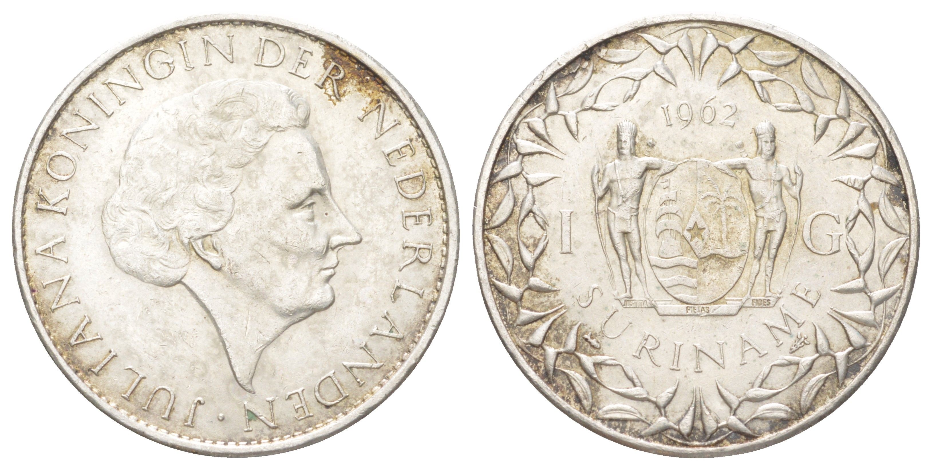 Суринам 1 гульден 1962 KM 15 серебро 3896-443