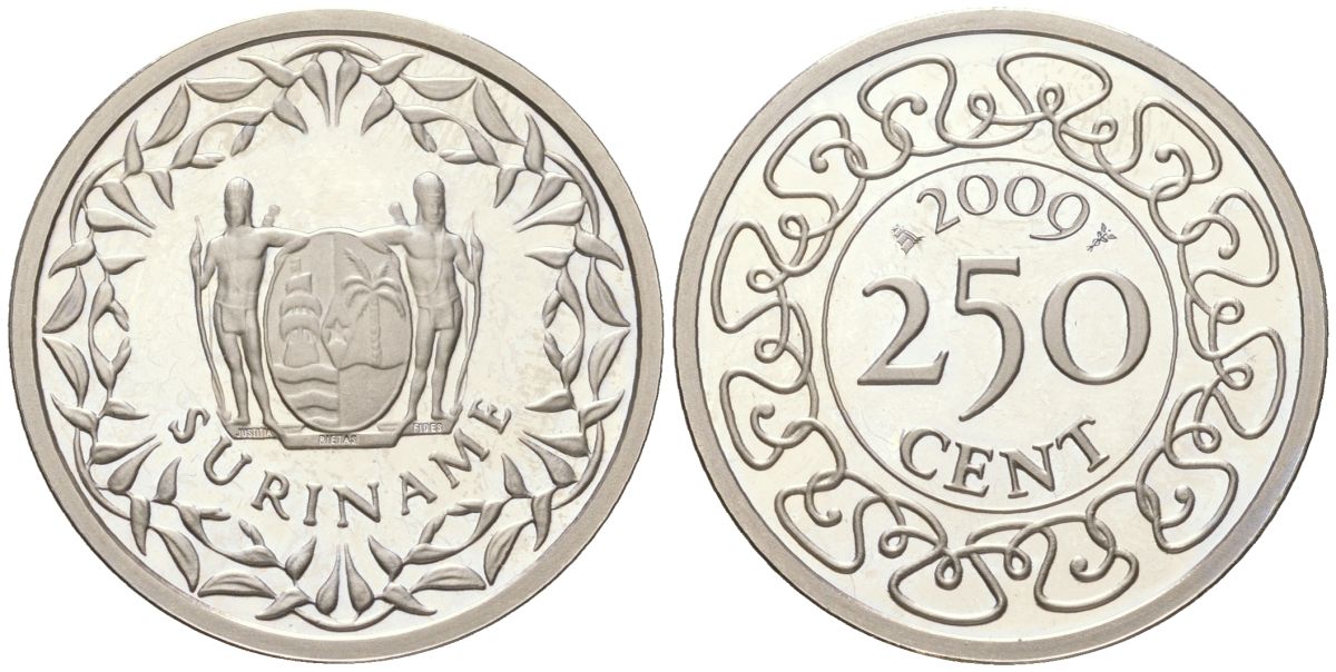 Суринам 250 центов 2009 KM 24 медно-никель PROOF 1523-1131