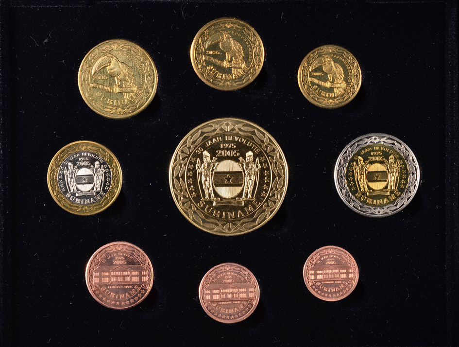 Суринам евронабор из 9 монет (с 5 евро) 2005 пробники, PROBA, в оригинальной коробке, с сертификатом PROOF 4-3-4-01