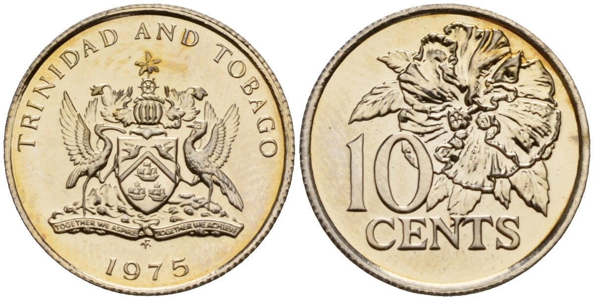 ----Тринидад и Тобаго 10 центов 1975 FM цветок гибискуса KM 27 медно-никель PROOF 4152-1018