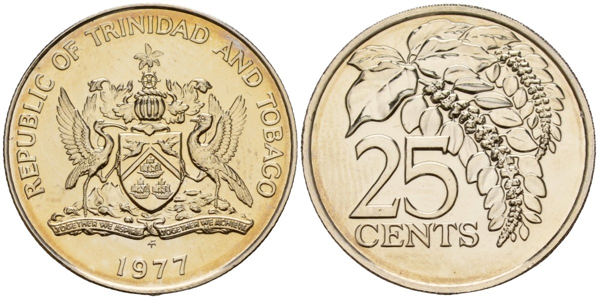 Тринидад и Тобаго 25 центов 1977 FM KM 32 медно-никель PROOF 4152-1054