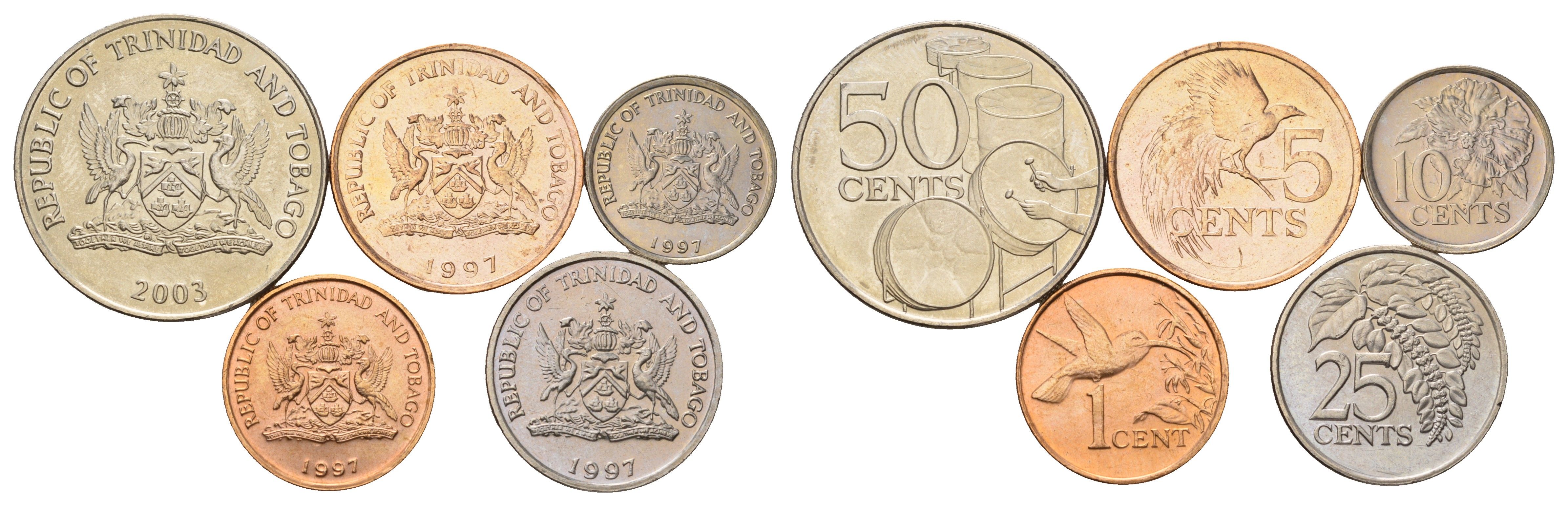 Тринидад и Тобаго набор из 5 монет (1, 5, 10, 25 и 50 центов) 1997 и 2003 KM 29, 30, 31, 32 и 33 UNC 4671-921-925