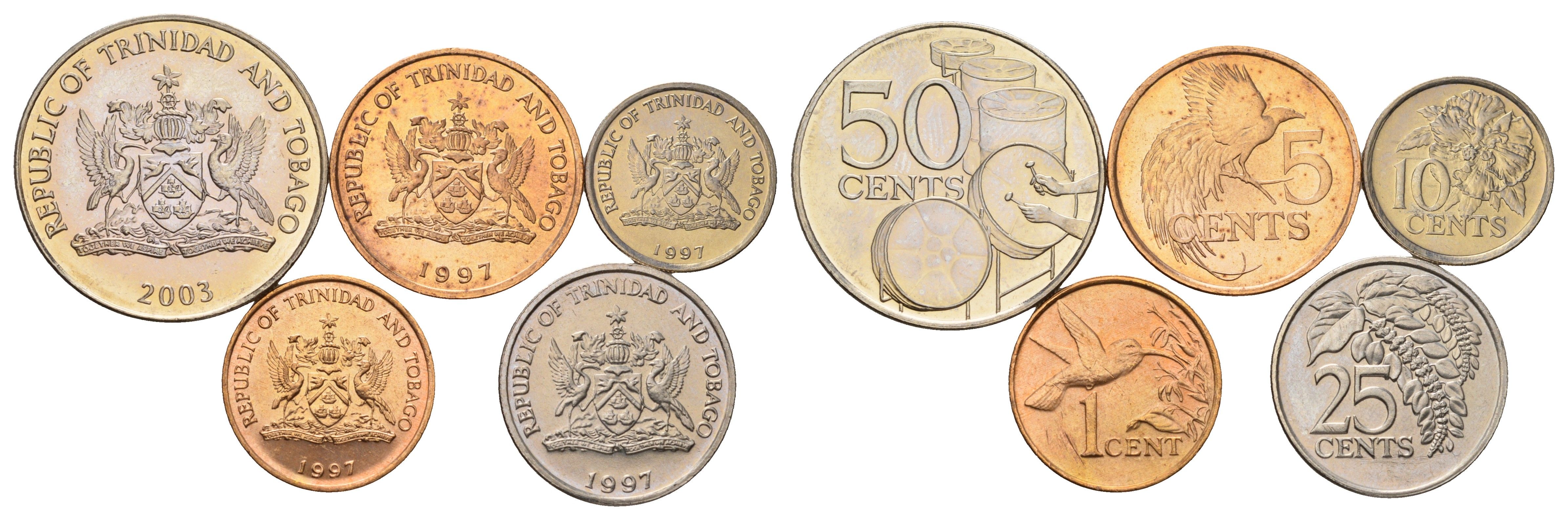 Тринидад и Тобаго набор из 5 монет (1, 5, 10, 25 и 50 центов) 1997 и 2003 KM 29, 30, 31, 32 и 33 UNC 4671-931-935