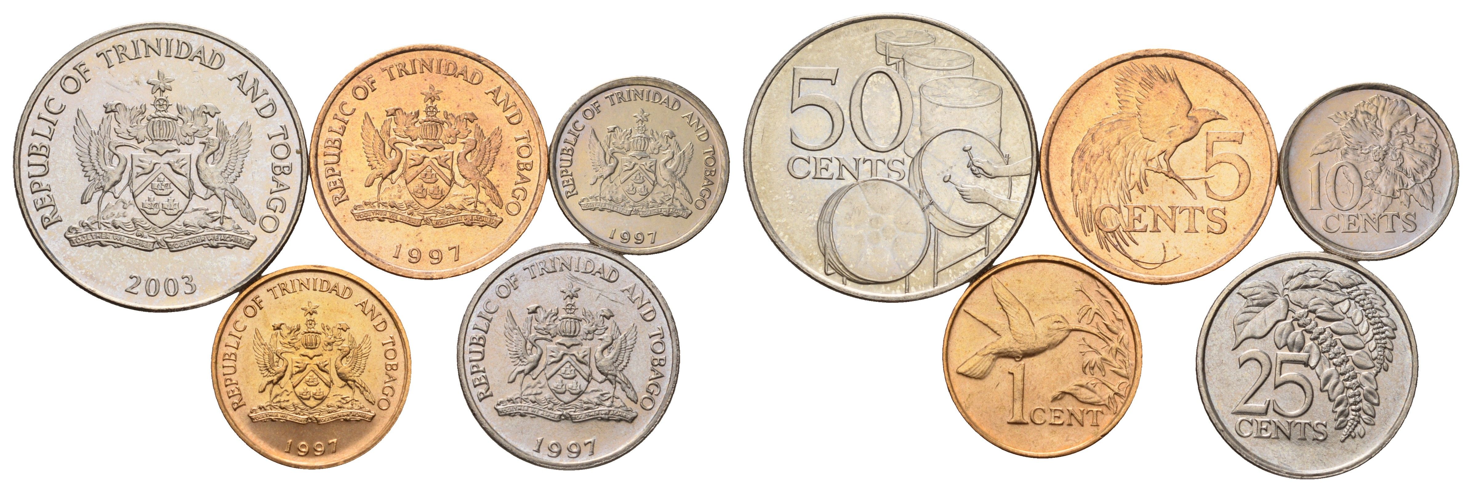 Тринидад и Тобаго набор из 5 монет (1, 5, 10, 25 и 50 центов) 1997 и 2003 KM 29, 30, 31, 32 и 33 UNC 4671-941-945