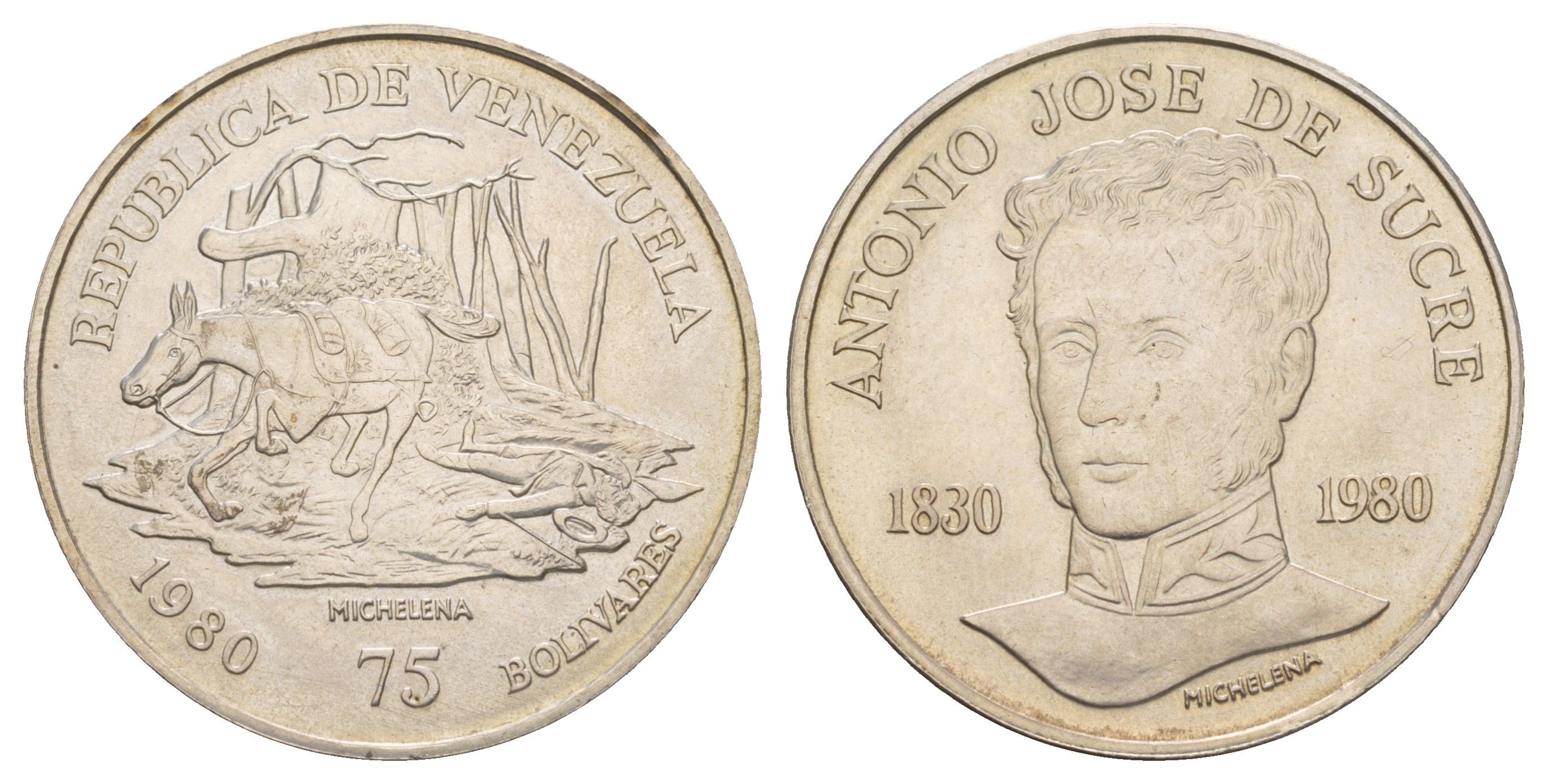 ----Венесуэла 75 боливаров 1980 150 лет со дня смерти Антонио Хосе де Сукре Y 55 серебро BU 413-3822