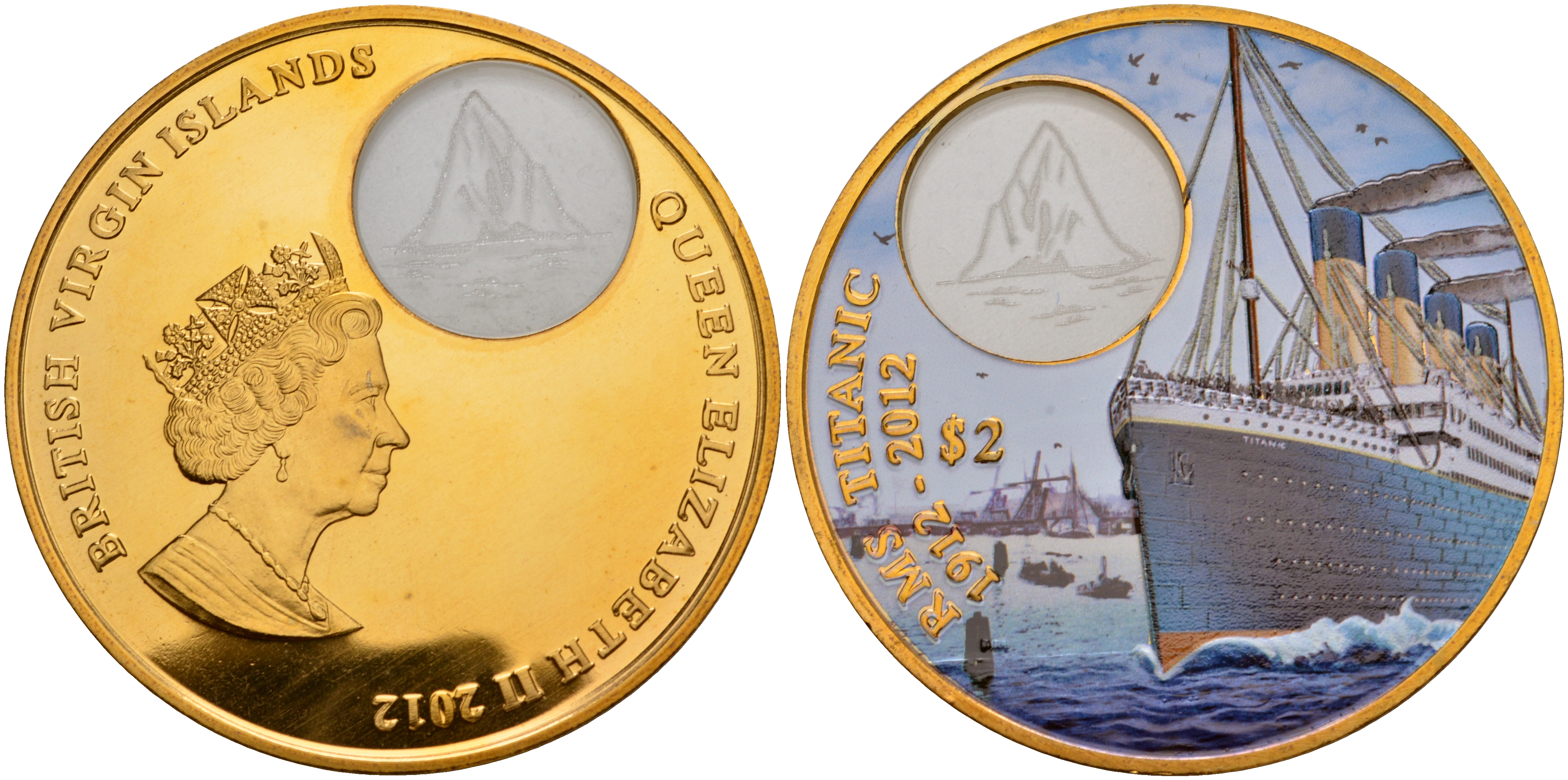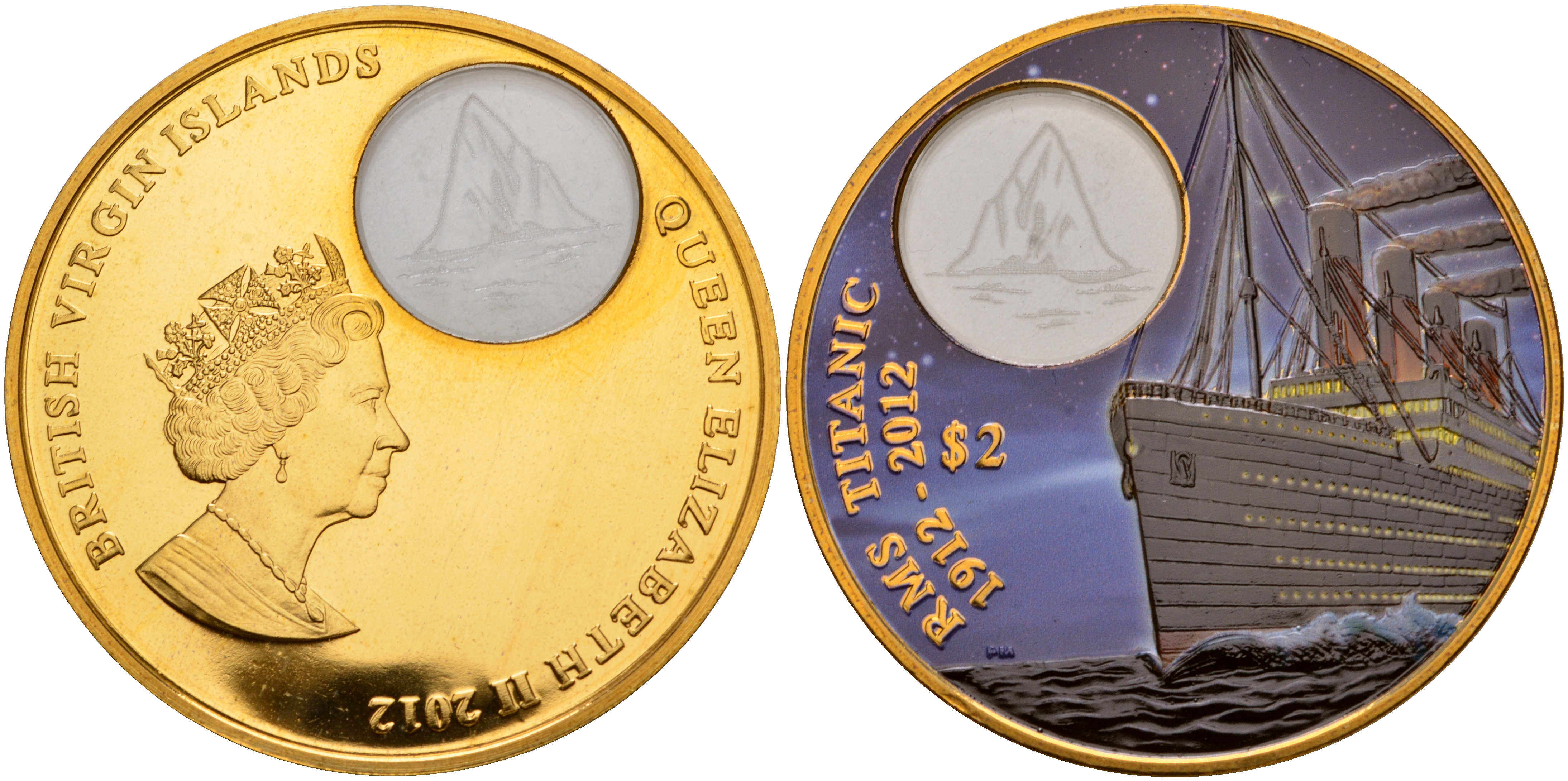Британские Виргинские острова 2 доллара 2012 100 лет гибели Титаника, с сертификатом, в оригинальной коробке, эмаль, Титаник в ночном море, вес 42 гр., диаметр 50 мм., тираж 1000 экземпляров бронза PROOF 4-3-5-02