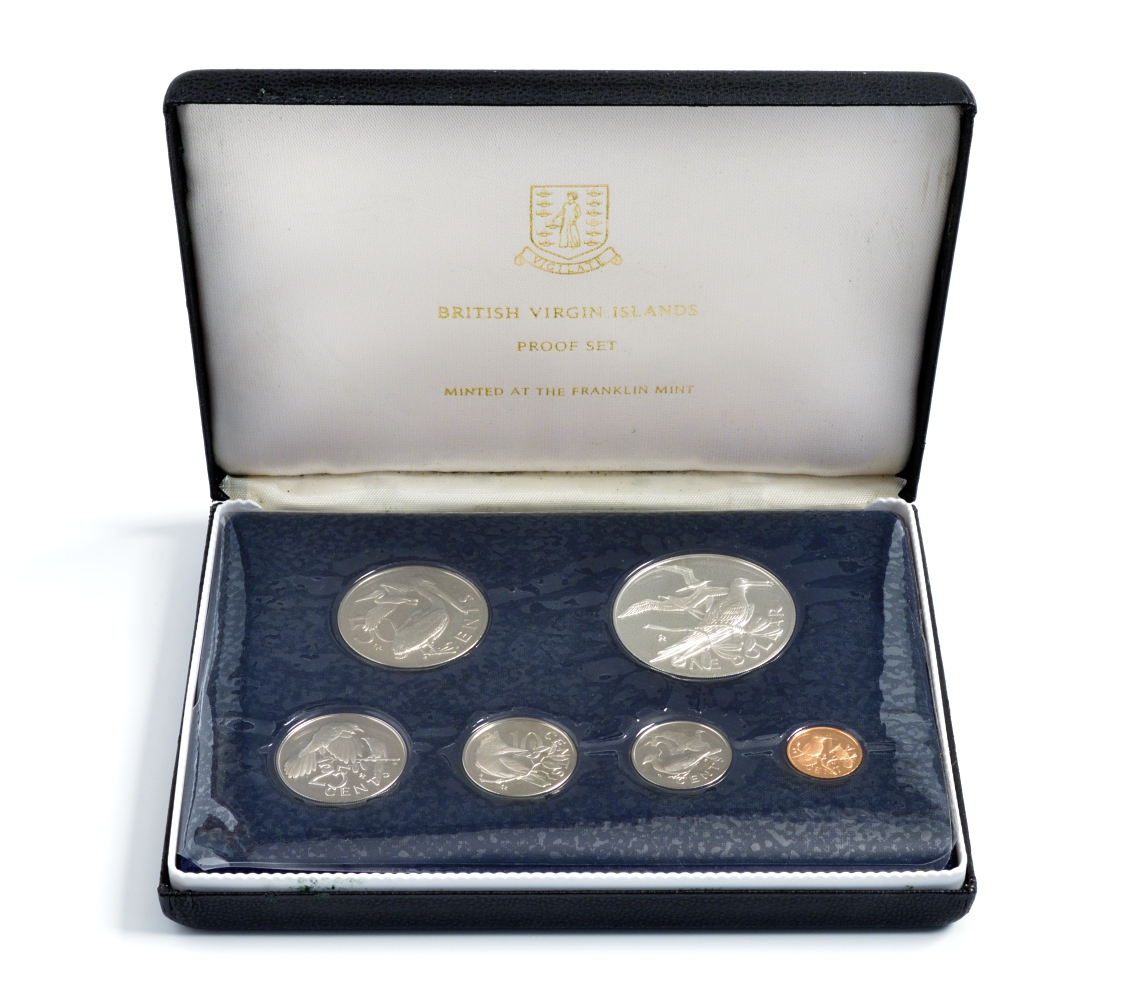 Британские Виргинские острова набор из 6 монет 1974 птицы, запайка, в оригинальной коробке с сертификатом тираж 93555 экз., KM PS2 серебро PROOF 7-7-19