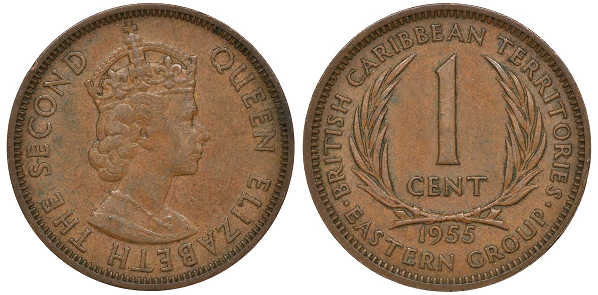 Британские Восточно-Карибские территории 1 цент 1955 Елизавета II (1952-2022) KM 2 бронза 4163-614