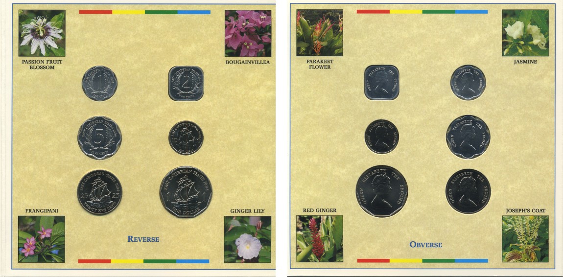 Восточно-Карибские штаты набор из 6 монет 1994 буклет, сертификат UNC 7-4-2-45