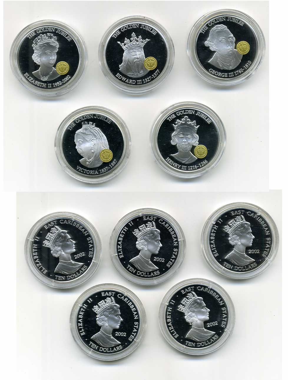 ВОСТОЧНО-КАРРИБСКИЕ ШТАТЫ НАБОР ИЗ 5 МОНЕТ 2002 КОРОЛИ ПЯТИ СТОЛЕТИЙ серебро Ш5