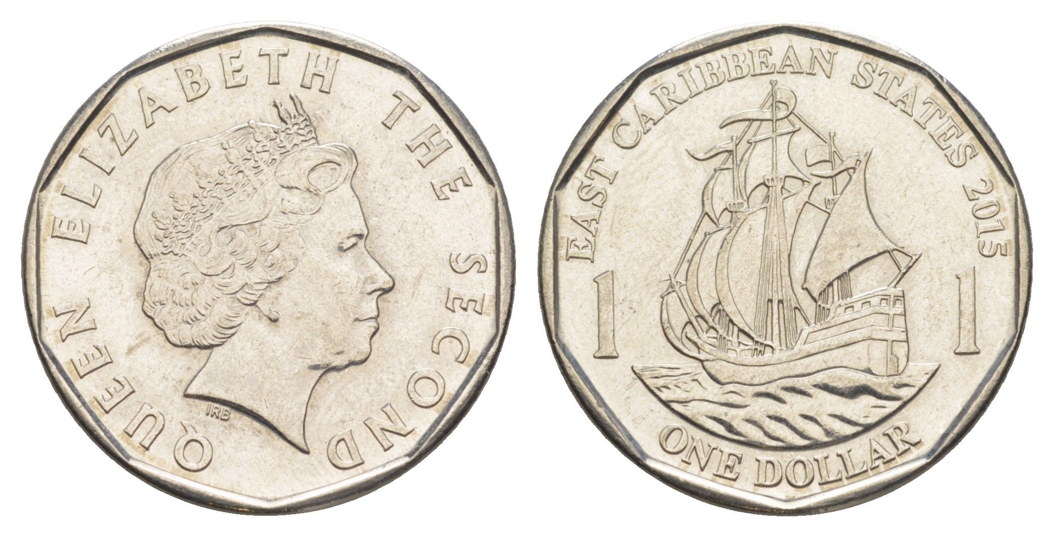 Восточные Карибские острова (Карибы) 1 доллар 2015 KM 39a сталь плакированная никелем 4646-246