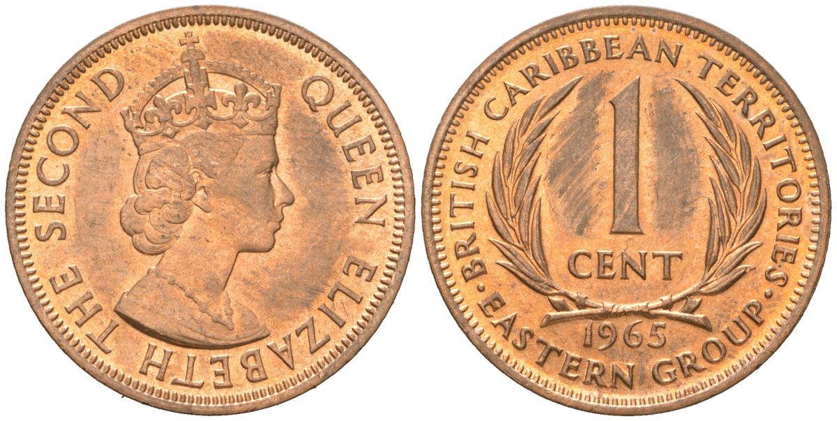 Восточные Карибы 1 цент 1965 KM 2 бронза aUNC 4121-955