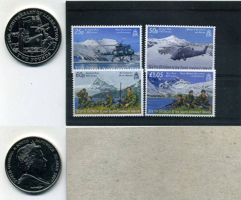 ЮЖНАЯ ДЖОРДЖИЯ И СЕНДВИЧЕВЫ ОСТРОВА 2 ФУНТА 2007 25 ЛЕТ НЕЗАВИСИМОСТИ ПЛЮС 4 МАРКИ UNC 7-5-19