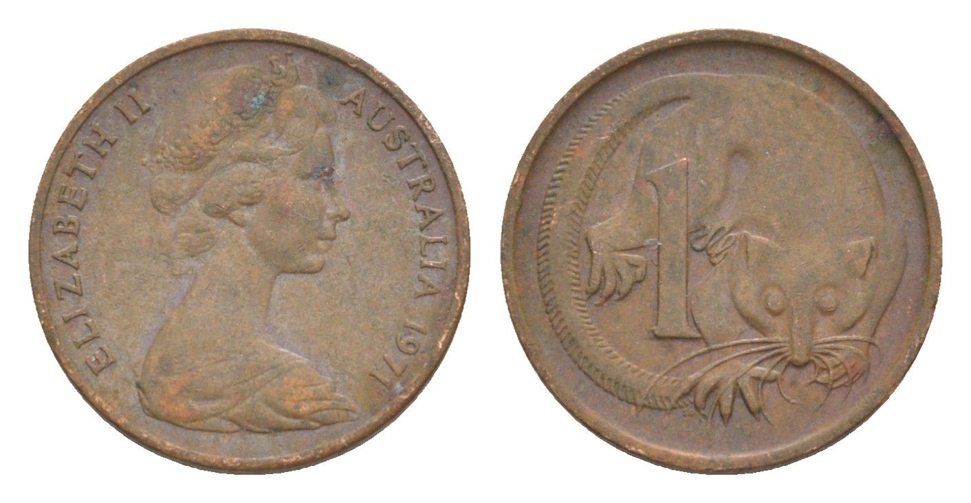 ---Австралия 1 цент 1970 Елизавета II (1952-2022), молодой портрет, опоссум KM 62 бронза 4585-244
