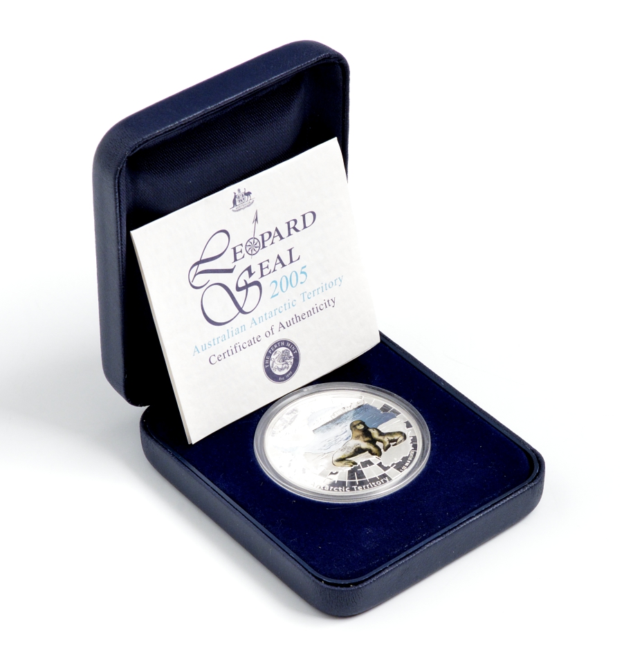 Австралия 1 доллар 2005 антарктические территории, морской леопард, эмаль, в оригинальной коробке, с сертификатом KM 1018 серебро PROOF 7-1-35