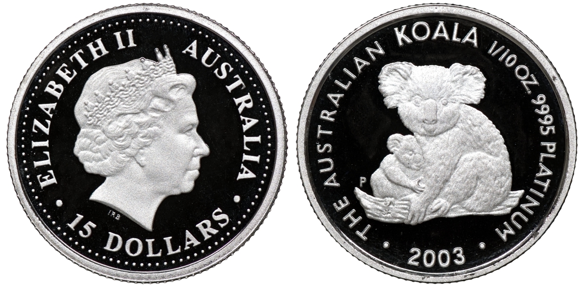 Австралия 15 долларов 2003 коала KM 926 платина PROOF 7-4-1-46