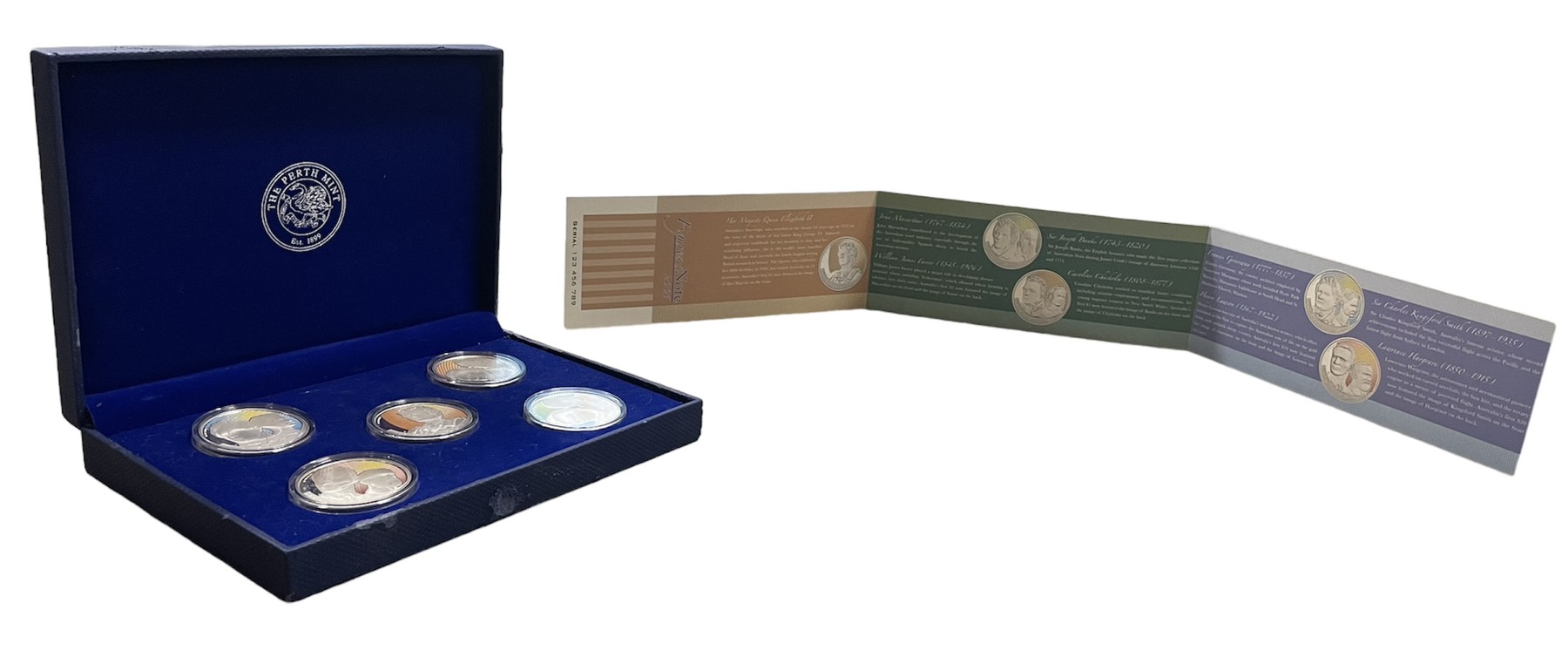 Австралия набор из 5 монет по 1 доллару 2006 лица на банкнотах, красочный набор, с сертификатом, серебро PROOF 1-4-6-06