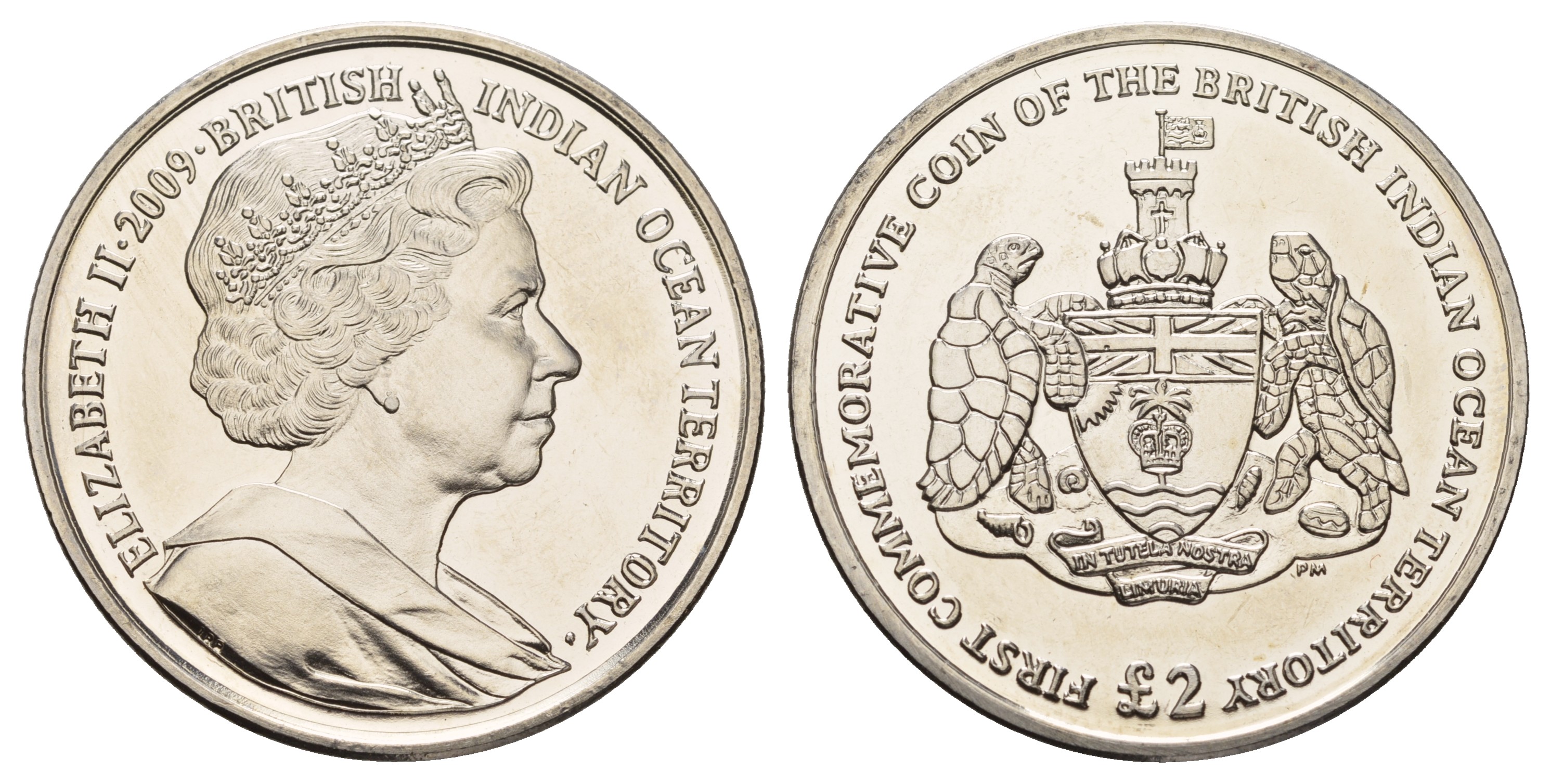 Британские Индийские Океанические территории 2 фунта 2009 герб, первая монета медно-никель PROOFLIKE 1066-6-13