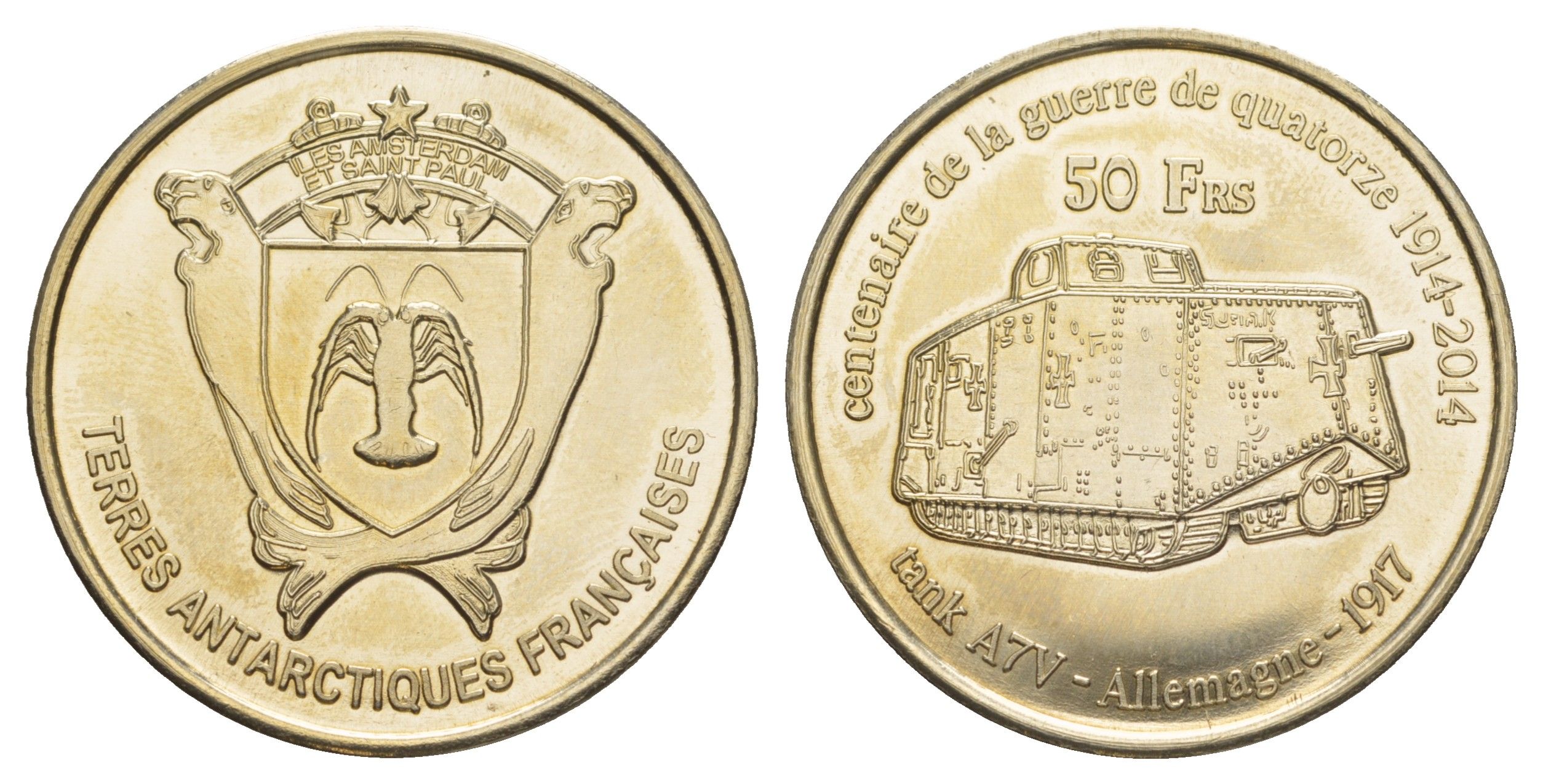 Французские Южные и Антарктические Территории (Амстердам) 50 франков 2014 танки Первой Мировой войны A7V - Германия 1917 медно-никель BU 1520-325