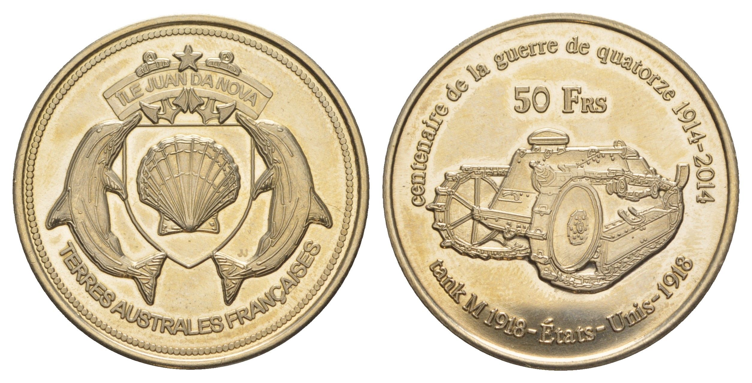 ----Французские Южные и Антарктические Территории (Жуан-ди-Нова) 50 франков 2014 танки Первой Мировой войны M1918 - США 1918 медно-никель BU 1520-243