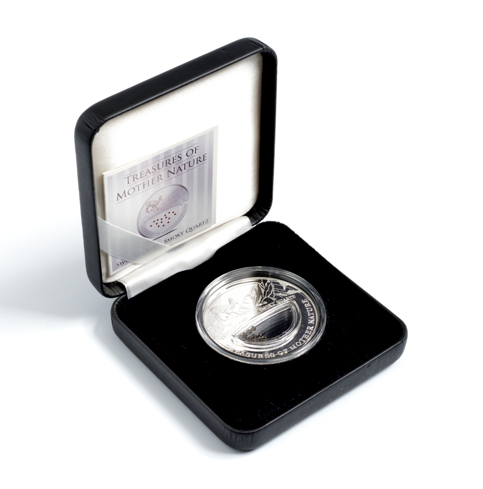 Фиджи 1 доллар 2012 серия Сокровища матери-природы, дымчатый кварц, в коробке, с сертификатом KM 453 серебро PROOF 1-4-3-04