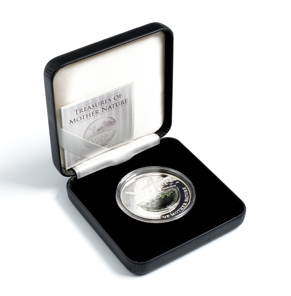 Фиджи 1 доллар 2012 серия Сокровища матери-природы, перидот, в коробке, с сертификатом KM 451 серебро PROOF 00-00-00