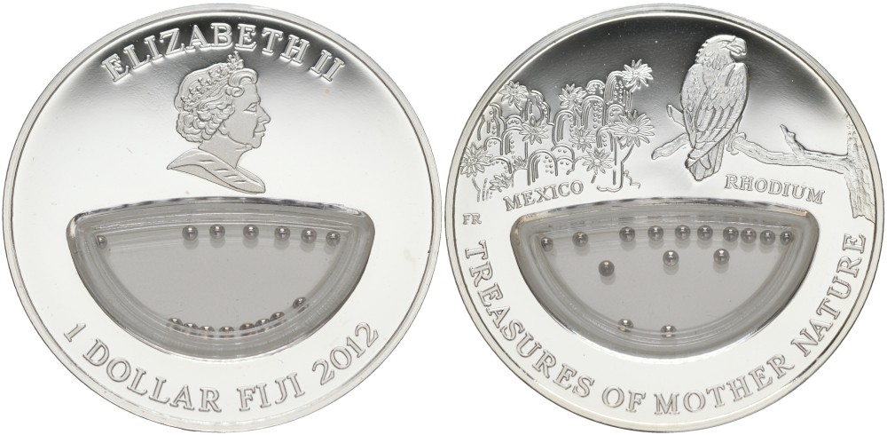 ----Фиджи 1 доллар 2012 серия Сокровища матери-природы, родий, в оригинальной коробке, с сертификатом KM 458 серебро PROOF 00-00-00