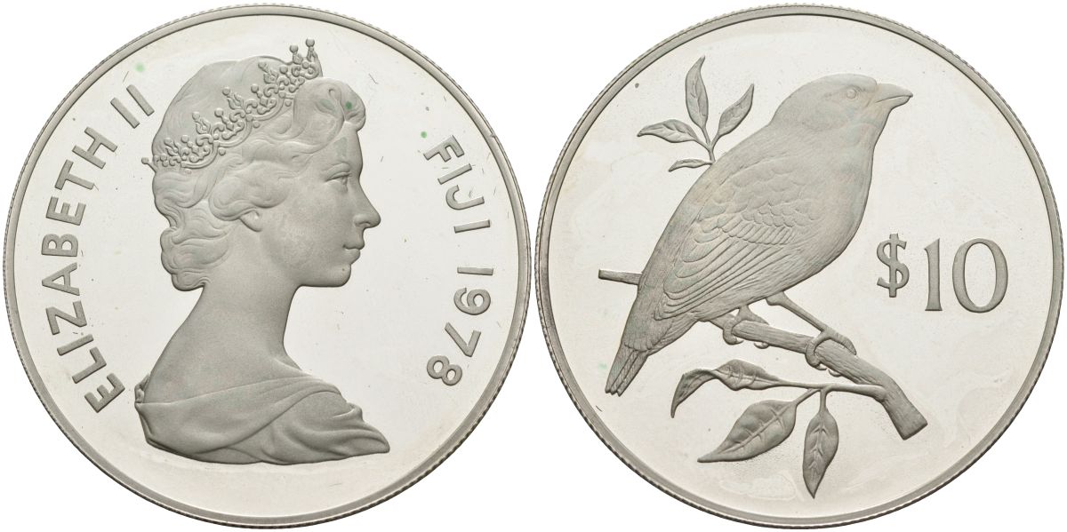 ----Фиджи 10 долларов 1978 Охрана окружающей среды KM 41a серебро PROOF 1098-5-12