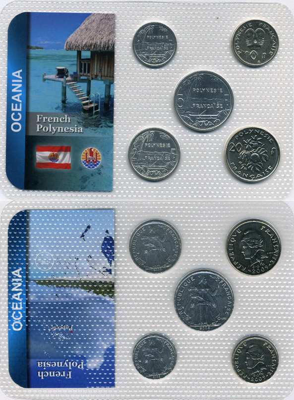 Французская Полинезия набор из 5 монет 2008-2009 1, 2, 5, 10, 20 франков, в целлофановой запайке KM UNC 5-6-3-63