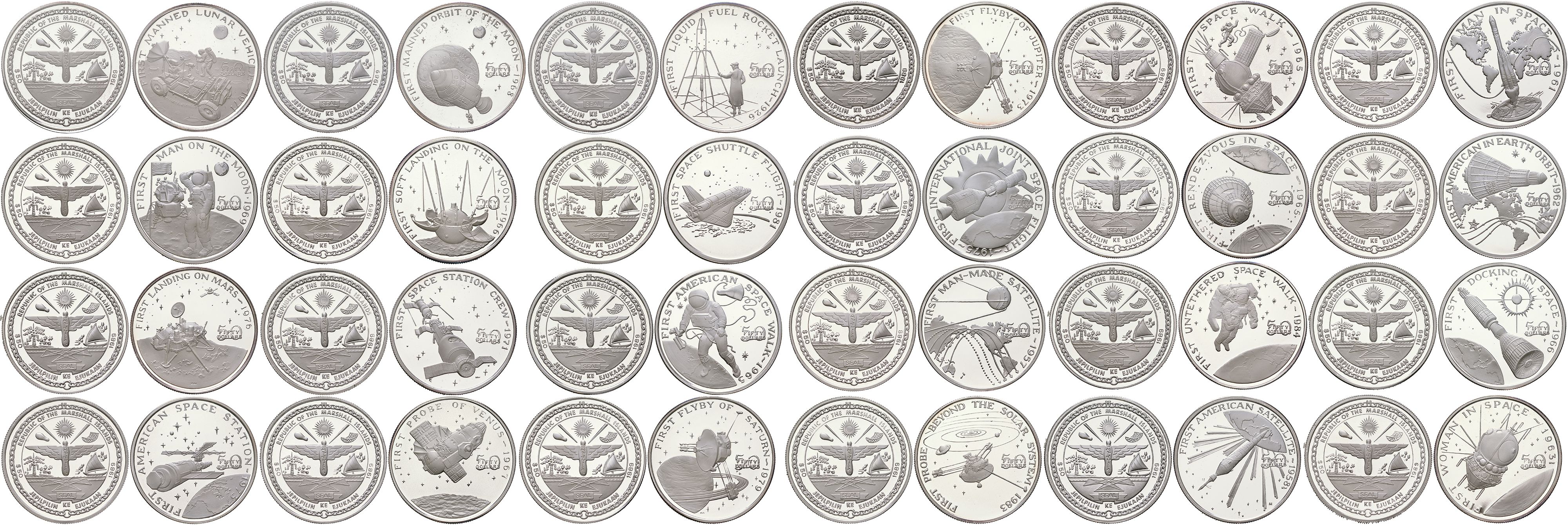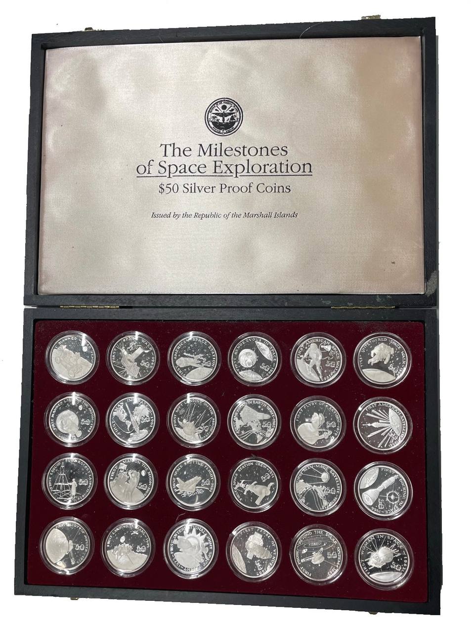 Маршалловы Острова набор из 24 монет (50 долларов) 1989 Вехи освоения космоса, в оригинальной коробке серебро PROOF L1-01-05