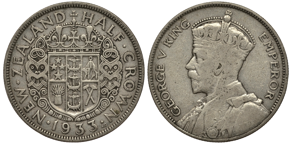 НОВАЯ ЗЕЛАНДИЯ 1/2 КРОНЫ 1933 ГЕОРГ V KM 5 серебро 272-514