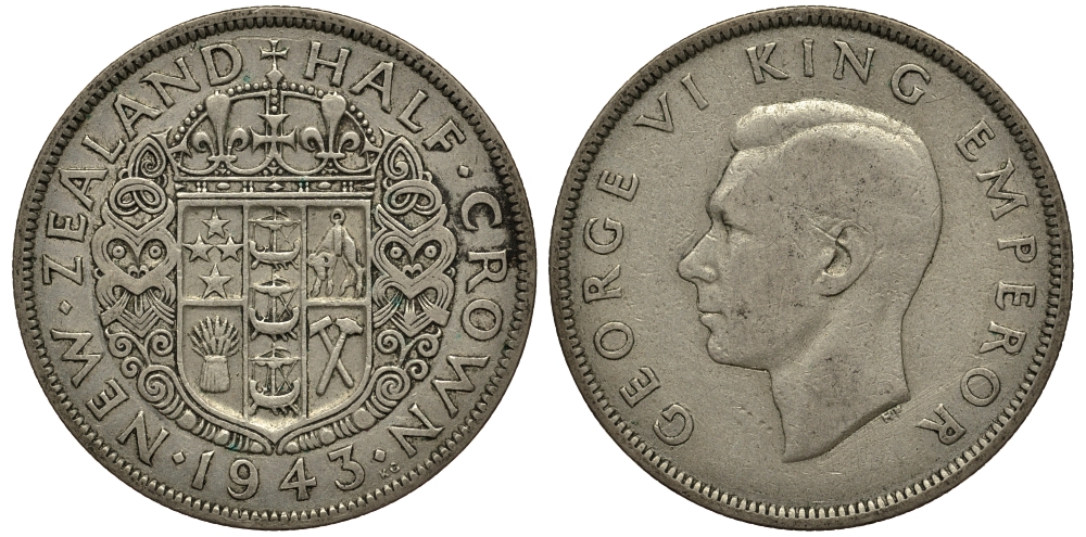 Новая Зеландия 1/2 кроны 1943 Георг VI (1936-1952) KM 11 серебро 272-1032