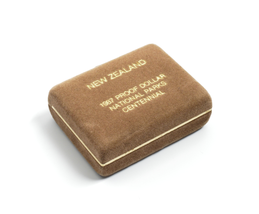 Новая Зеландия 1 доллар 1987 100 лет Национальному парку, в оригинальной коробке KM 65а серебро PROOF 4-3-4-39
