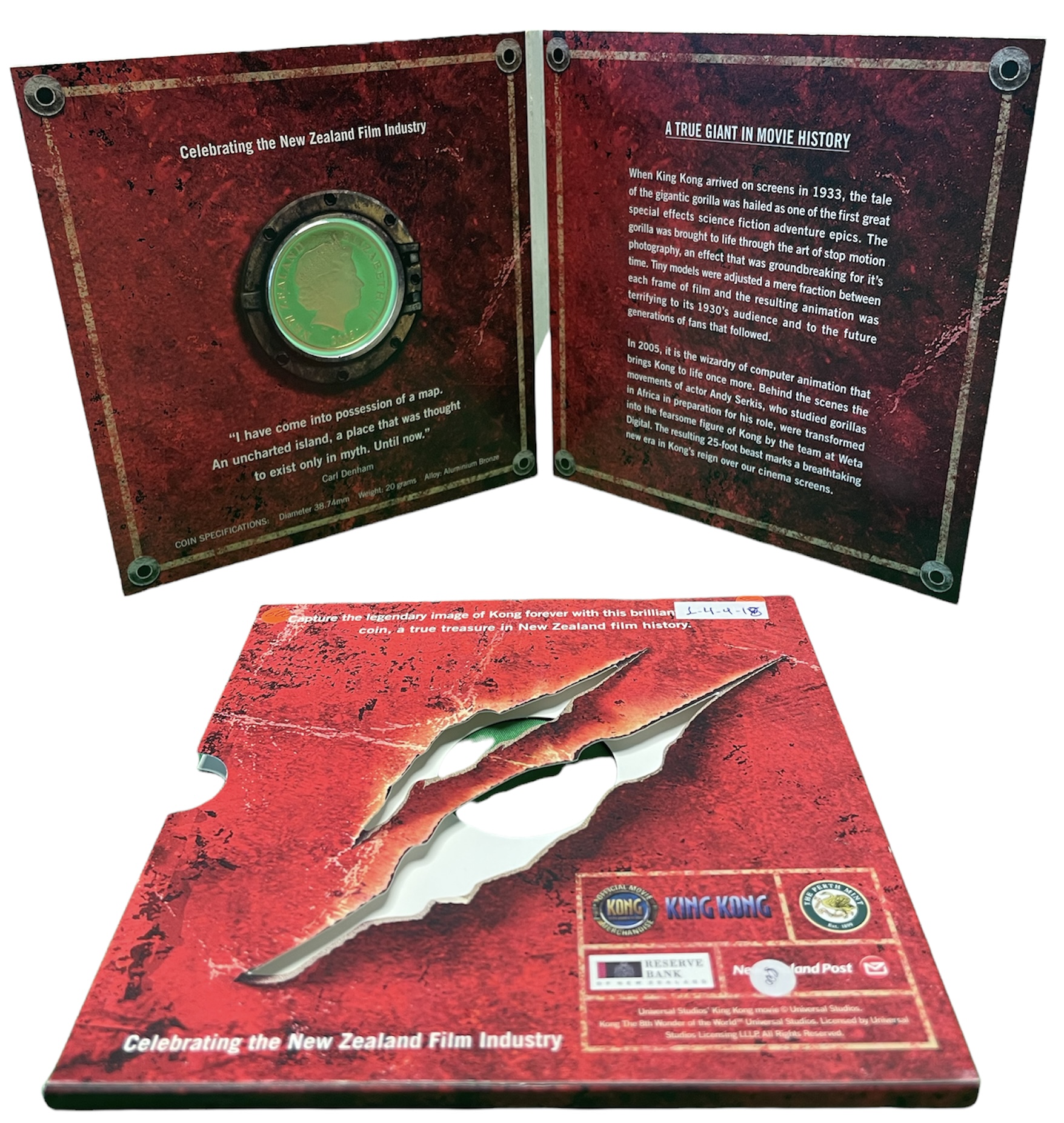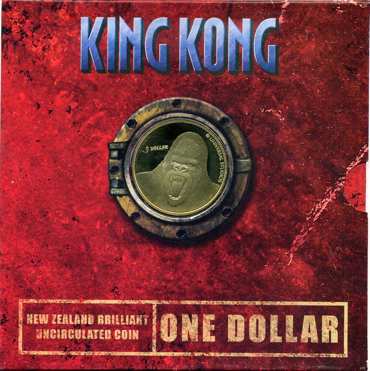 Новая Зеландия 1 доллар 2005 Кинг Конг, в оригинальном буклете, цветная эмаль алюминиевая бронза UNC 1-4-4-18
